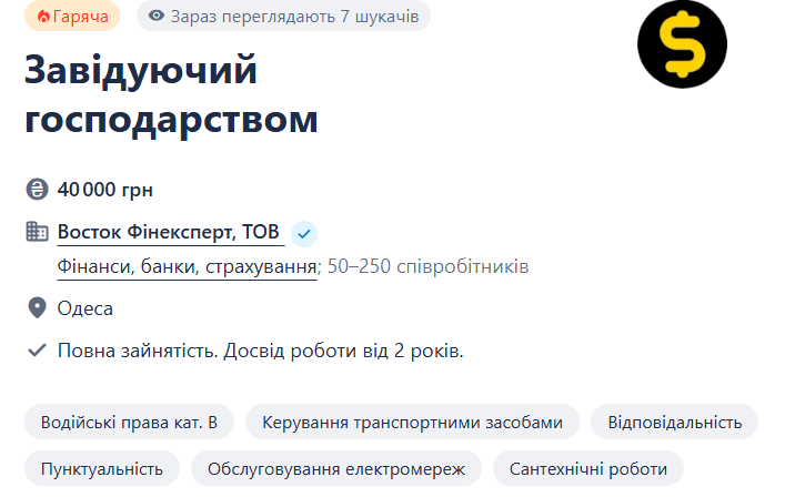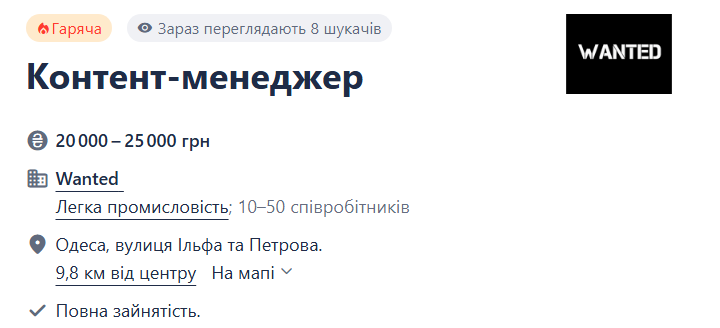 Зазначимо, що ця підбірка не є рекламою чи рейтингом. Усі вакансії були випадково знайдені на сайті Work.ua, який Google показує серед перших результатів за запитом “робота в Одесі”.