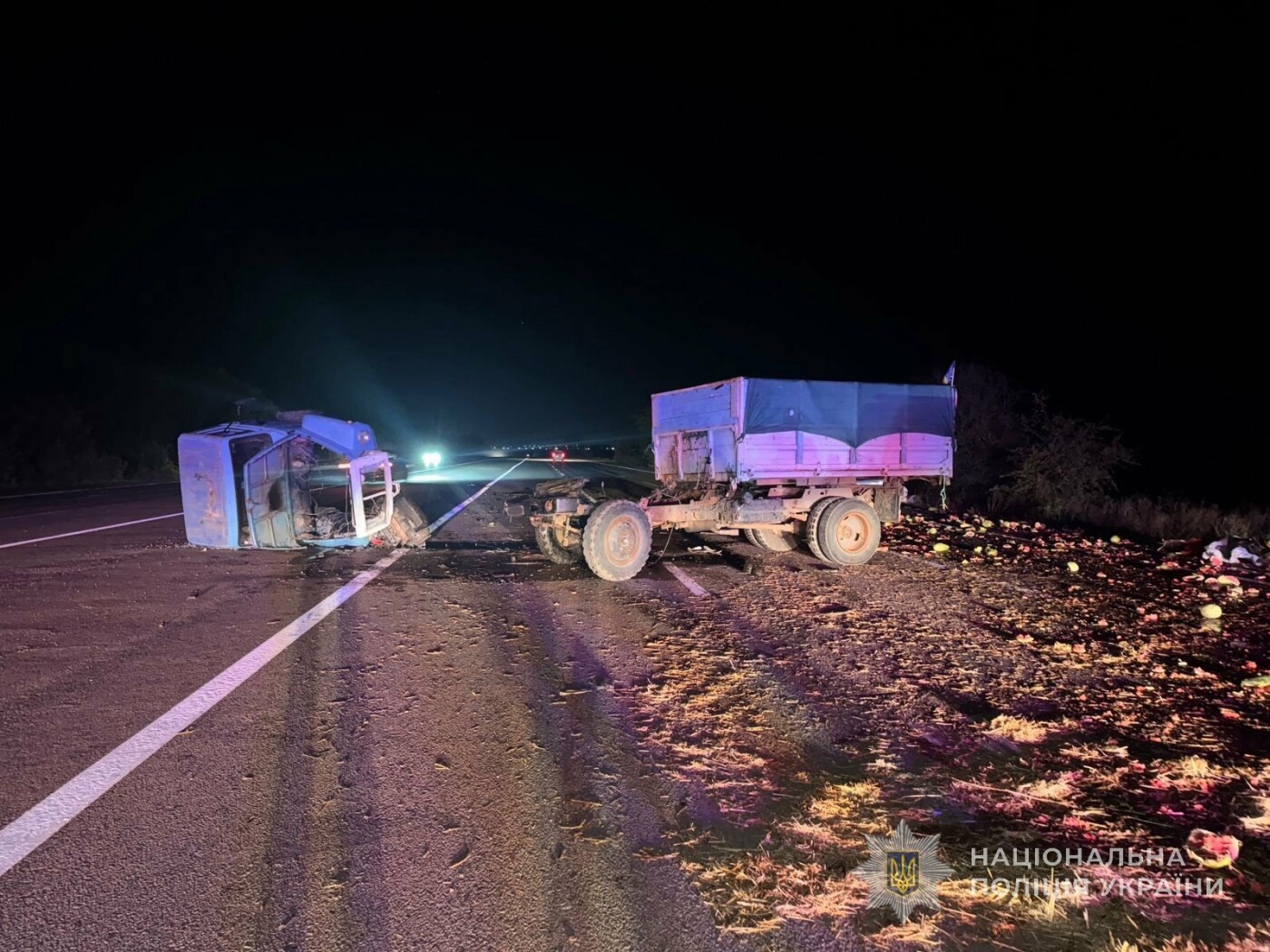 Поліцейські розпочали кримінальне провадження за фактом ДТП на трасі Київ – Одеса. Водій самоскида не надав перевагу легковому автомобілю. Внаслідок зіткнення спецтехніку розірвало навпіл. Травмувалися обидва водії та 50-річна пасажирка легковика.