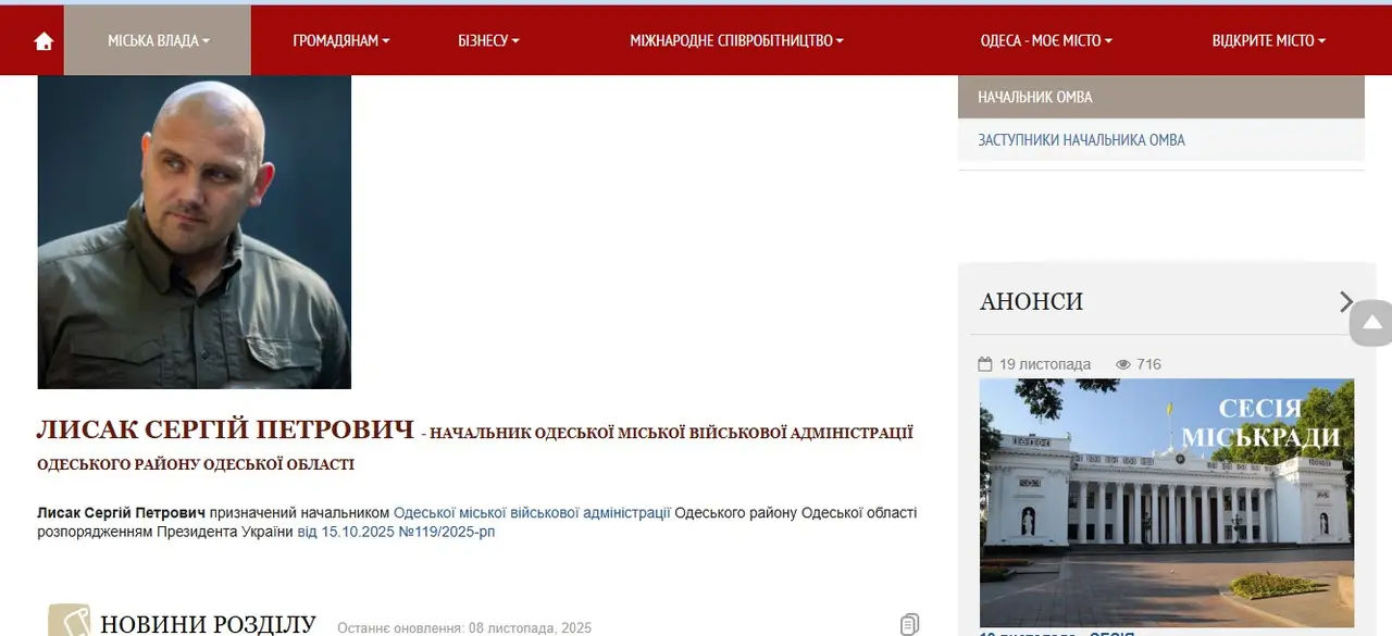 Сергея Лисака президент Украины назначил начальником Одесской городской военной администрации 15 октября. Уже на следующий день фото, видео и информационные сообщения начали появляться на его аккаунтах в сетях Фейсбук и Телеграм.