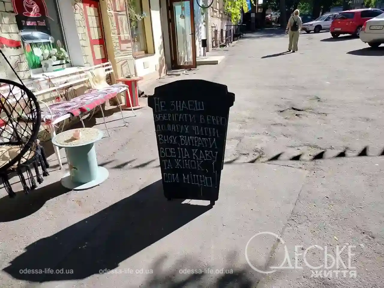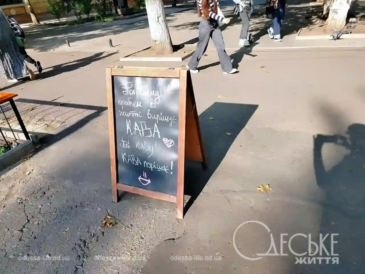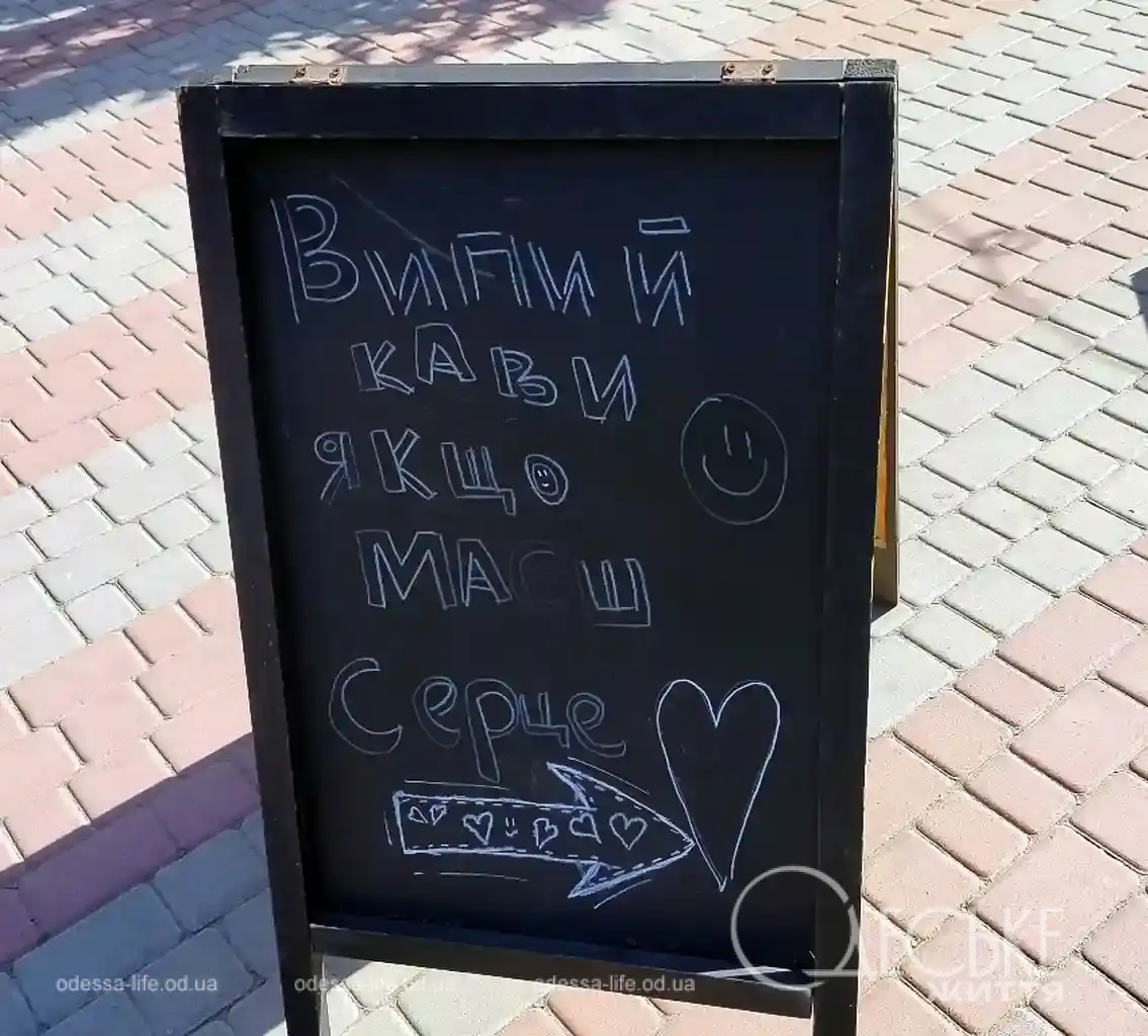 - Одесские кофейни превратили уличные штендеры в разновидность юмора: короткие фразы работают как шутки, которые поднимают настроение прохожим.
